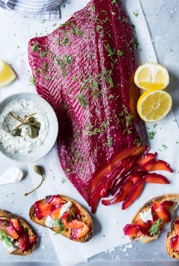 Bạn cảm nhận được gì từ tấm ảnh trên? Quả là một món cá hồi rực rỡ đầy hấp dẫn phải không? Cá hồi có nhiều cách để chế biến thành món ăn ngon, nhưng nếu bạn đang tìm một món ăn thú vị và mới lạ từ cá hồi, hãy thử công thức cá hồi ướp muối củ dền đặc biệt này, chúng không chỉ ngon mà còn giàu dinh dưỡng. Màu sắc món ăn cũng hấp dẫn đủ để bạn bày biện lên bất cứ bàn tiệc nào.