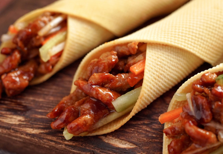 250 g thịt thăn heo – 1 lòng trắng trứng gà – 2 thìa canh rượu nấu ăn – 1 thìa canh hắc xì dầu – 1 thìa canh xì dầu – 1/2 thìa cafe muối – 1 thìa cafe đường trắng – 1/2 thìa cafe bột tiêu – Một chút tinh bột bắp – 2 thìa canh sốt đậu ngọt – 1 quả dưa chuột 30gr – 1 củ cà rốt 30gr – 1/4 củ hành tây – 3 thìa canh dầu ăn – Một chút nước lọc – Vài miếng váng đậu.