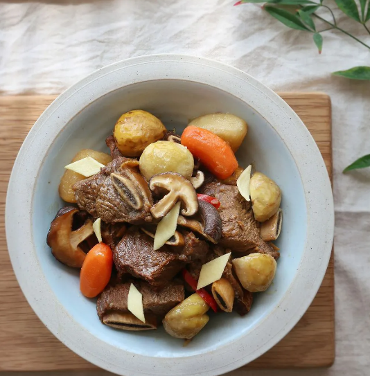 Những miếng sườn bò chín mềm, thấm đều gia vị mặn ngọt hài hòa, được nấu đúng cách khiến khi ăn như tan chảy trong miệng. Kết hợp với rau củ ngọt mát, hòa quyện một chút nấm dai ngon, một chút hạt dẻ bùi bùi tạo nên một món ăn không chỉ bắt mắt, hấp dẫn mà còn vô cùng ngon miệng, đủ chất dinh dưỡng.